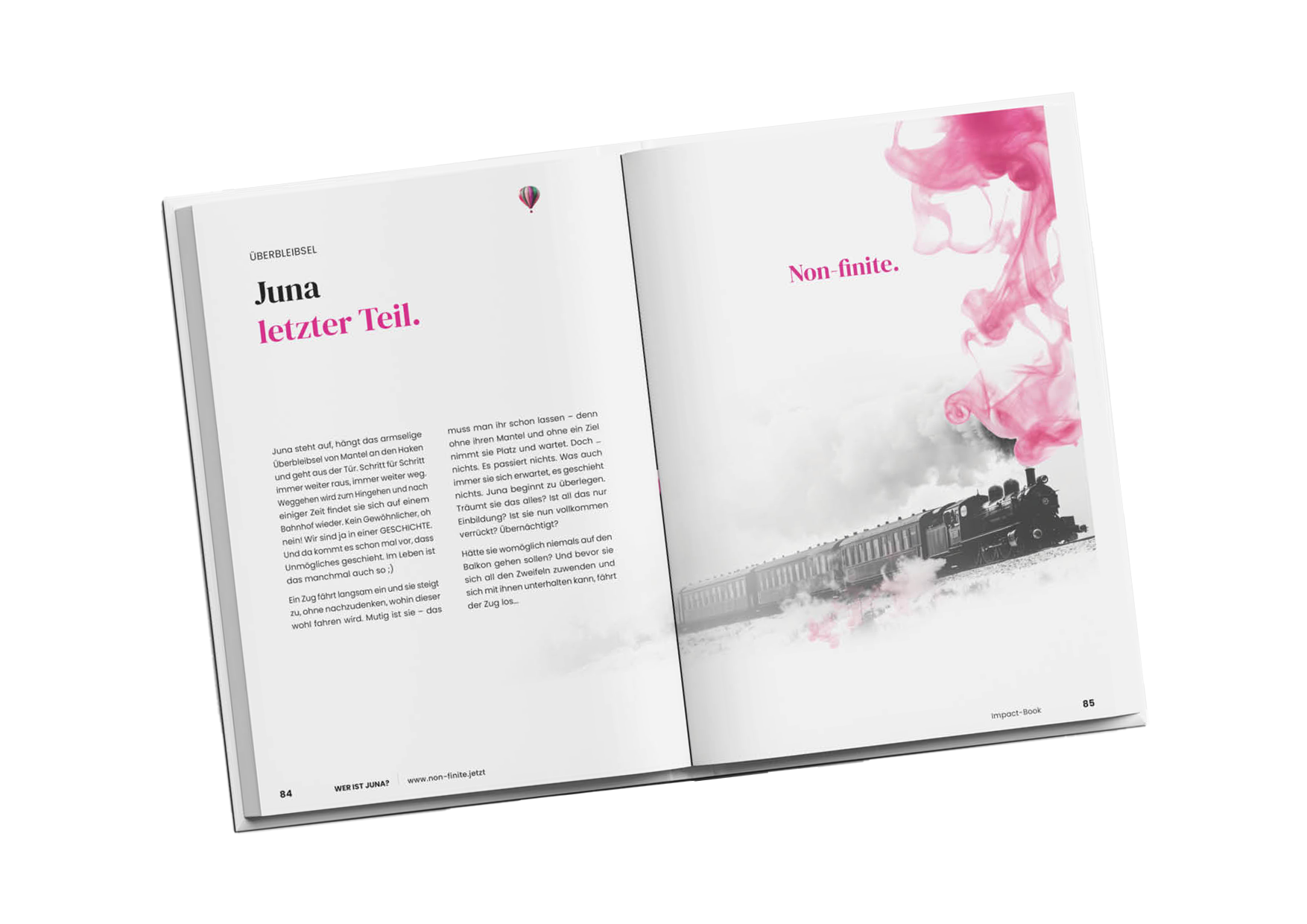 „Wer ist Juna? Band 1“ ist also kein gewöhnliches Buch! Es ist ein Impact-Buch, das weit mehr bietet als eine Geschichte: Übungen, handgefertigte Grafiken und fundierte Theorie führen die Leserin auf ihre eigene Reise der Reflexion. Das ist kein Roman, der unterhält, es ist eine Geschichte, die einen nicht mehr loslassen wird. Weil sie alles anspricht, was wirklich zählt.