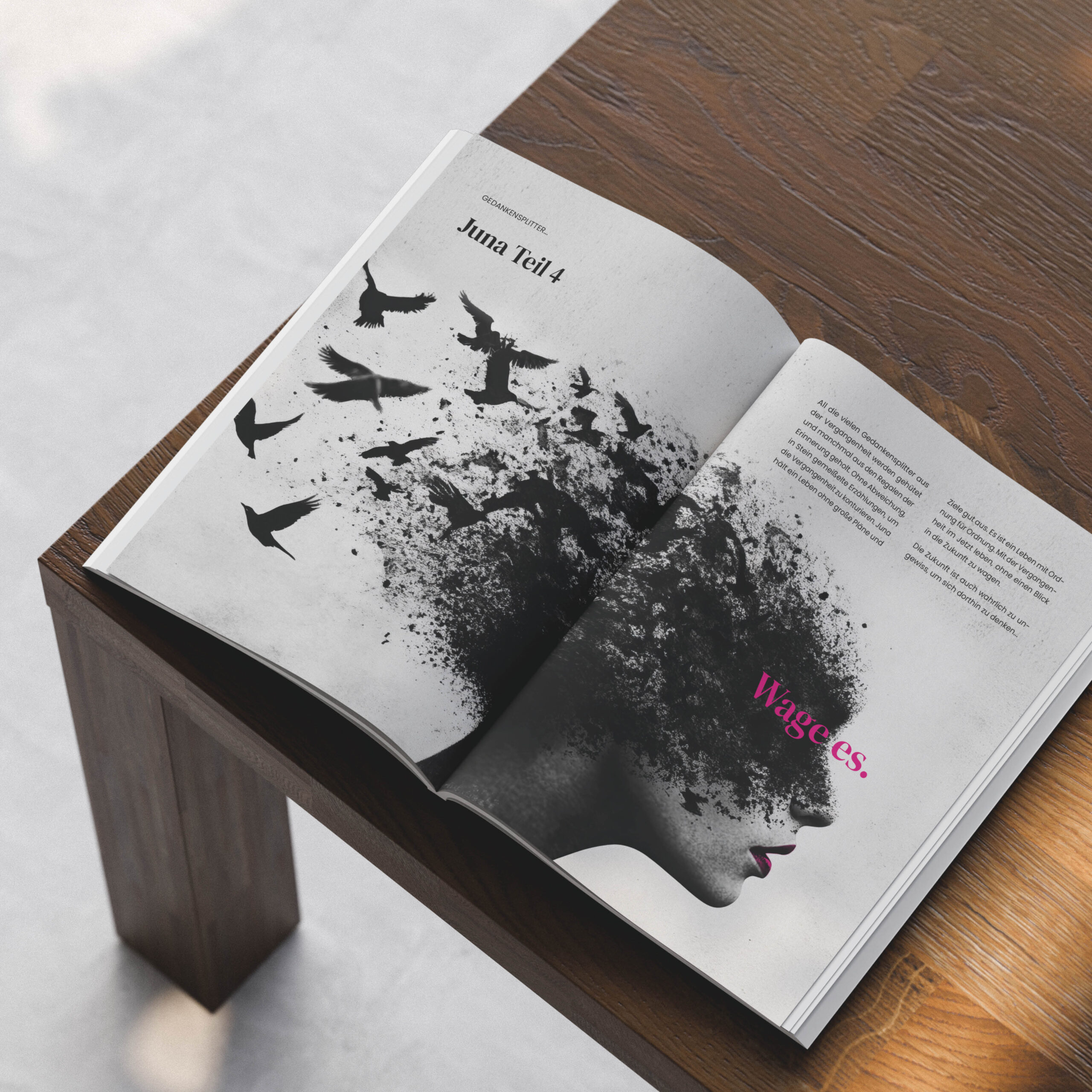 Psychologie trifft Grafik. Kein Personenkult, kein Rampenlicht. Worte, die wirken. Bilder, die bleiben. Namen sind nicht wichtig – Veränderung schon. Wir schreiben, gestalten und lassen die Geschichte sprechen.